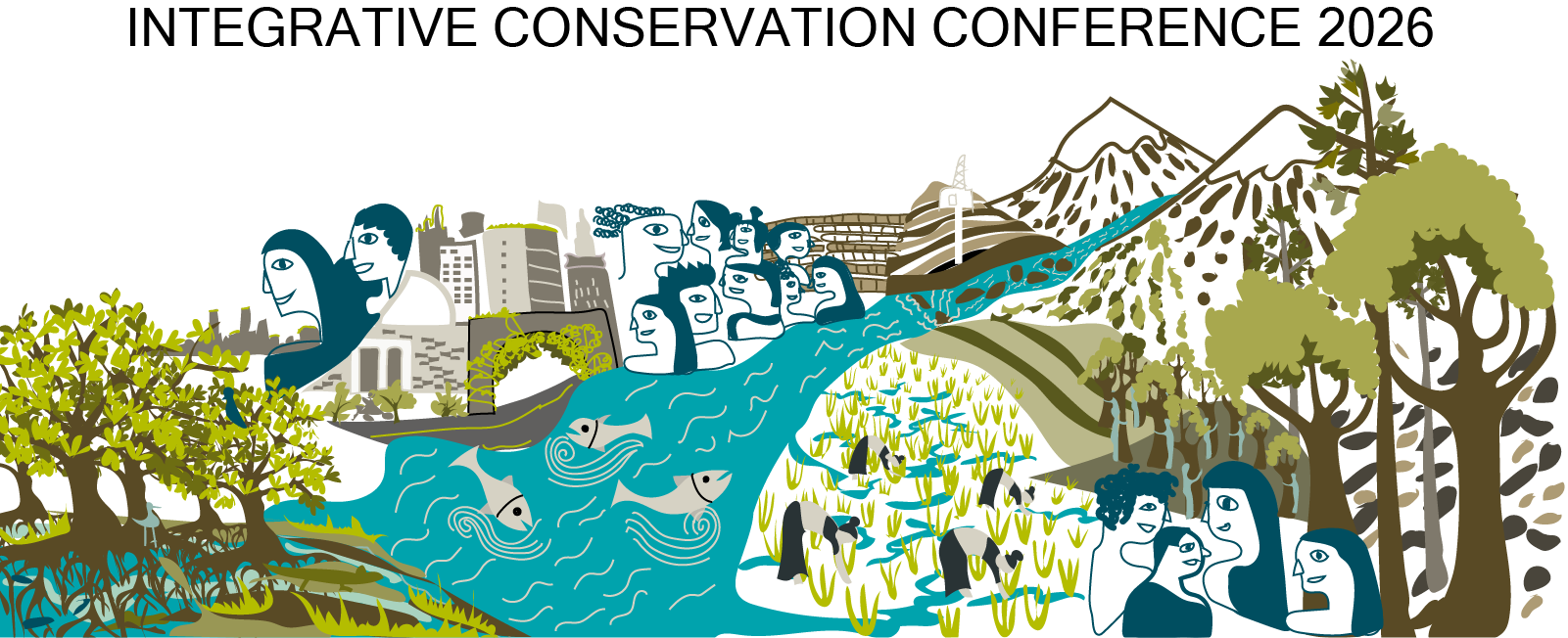 I particularly view the world with this lens perhaps because my research centers alpine streams and communities that are in flux with these streams – always in making and mutual shaping. This image, conceived for ICC 2026 focusing on ‘Centering Community’, tries to incorporate more communities and land/waterscapes – from alpine forests to gently rolling hills with hardwood trees, terrace farming, rice farming, mining industries, (univer)cities and mangrove wetlands. It follows a stream from its glacial origins to its numerous interactions with different landscapes, alongside communities and assemblages of fishes, farmers, trees, industrialists, and cities. These communities perceive and relate to water in diverse ways, yet they are unified in their reliance on water. Communities that acknowledge and appreciate their relationalities with water understand its ephemeral nature, dynamism, and respond to changes informed by those insights. Research may render some of these responses in communities visible, but much remains untranslated and unresolved. Moreover, no visual representation anyone creates can wholly represent the complexity of water-entangled communities. Defining these communities and entanglements seems more a process, rather than a step with a specific outcome. That is what especially excites me about Centering Community at ICC 2026.